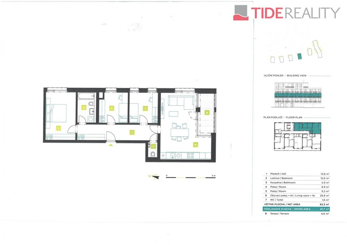 This specific apartment 4+kk with a floor area of 88 m2 and a terrace of 6.6 m2, is located on the 3rd floor of the five-story building A4 and has a very pleasant southeast orientation. Each 3,4,5+kk apartment unit also has a choice of at least 2 outdoor/indoor parking spots, which are not included in the price of the apartment, and it is also possible to purchase a cellar for larger apartments. The entire project offers a large selection of 3,4,5+kk apartments ranging from 88 to 120 m2 even on higher floors and with spacious terraces. At the moment, it is also possible to customize units to some of your specific requirements, so do not hesitate to contact us.