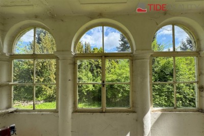 Dominantou pozemku je vila určená k rekonstrukci s užitnou plochou téměř 900 m², postavena ve 30.letech dvacátého století jako rodinné sídlo starosty Ratajů, později byla přebudována na domov pro seniory, což z ní činí ideální základ pro široké spektrum budoucích využití – od luxusního rodinného bydlení, přes soukromou kliniku, až po rezidenční či komunitní projekt. Součástí areálu je také zahradní domek, ideální například jako zázemí pro správce nebo k rekonstrukci na stylový ateliér.