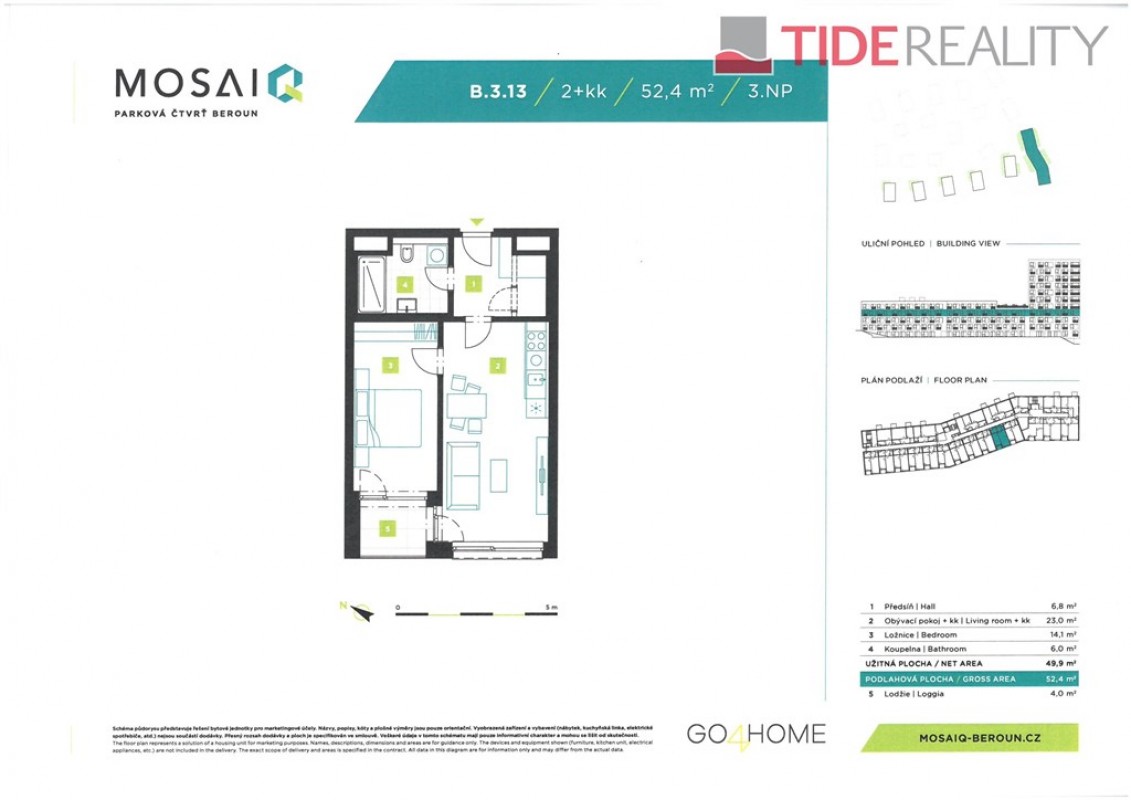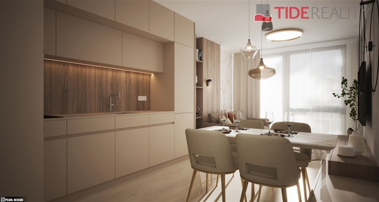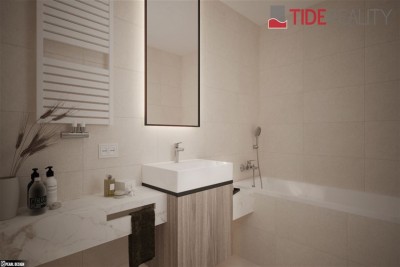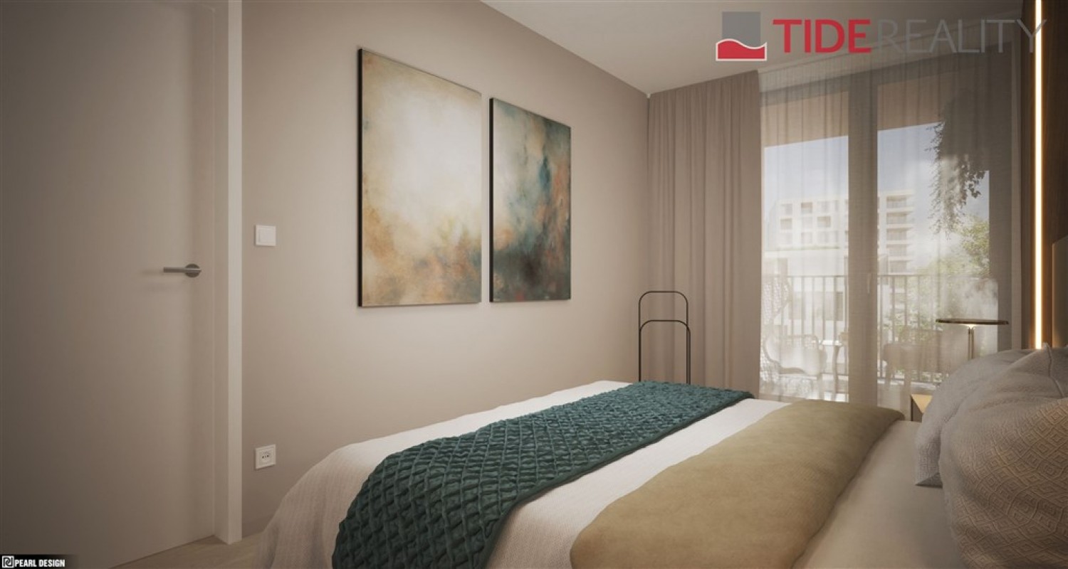 Tato západně orientovaná jednotka 2+kk s lodžií o výměře 4 m2 sestává z obývacího pokoje s kuchyňským koutem, ložnice, koupelny a předsíně. Podlahová plocha jednotky činí 52 m2 + lodžie. Standardní vybavení bytů zahrnuje plovoucí podlahy, interiérové dveře s výškou 210 cm, moderní vybavení koupelen, okna s barevným rámem a izolačním trojsklem, přípravu na vnější žaluzie. V bytech budou moderní datové rozvody formou strukturované kabeláže a přípojka STA. V projektu bude využita smart technologie pro vytápění, která pracuje se dvěma tepelnými zdroji – tepelnými čerpadly a zemním plynem. Dostatečná kapacita parkovacích míst převážně v podzemních garážích, ale i venku. Příznivé platební podmínky doplatek kupní ceny ve výši 85% je hrazen až po kolaudaci!