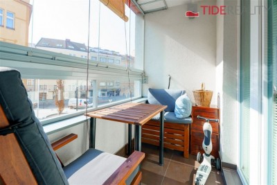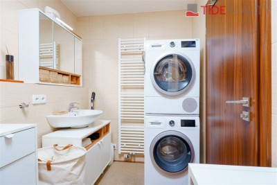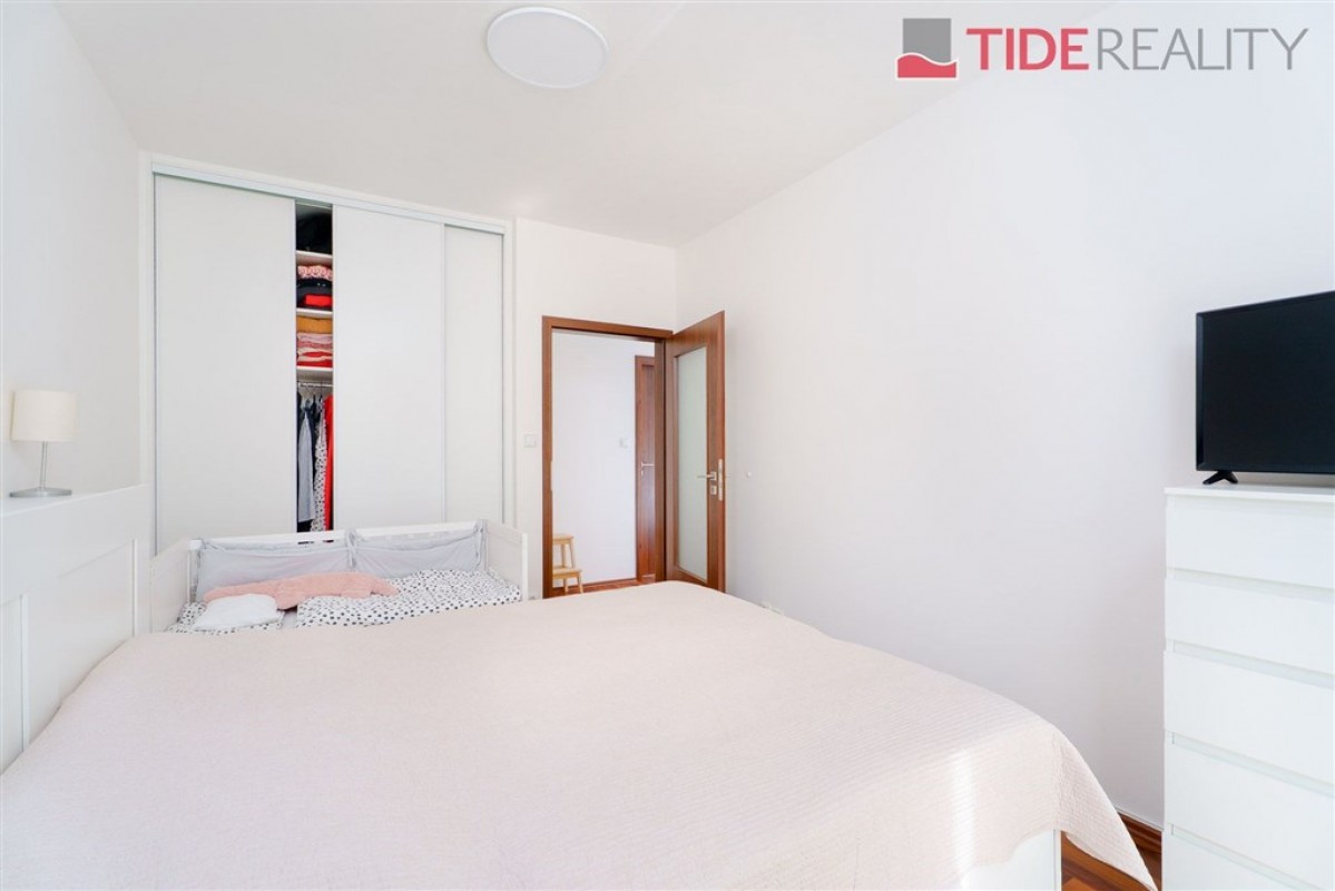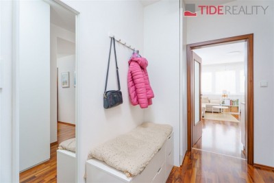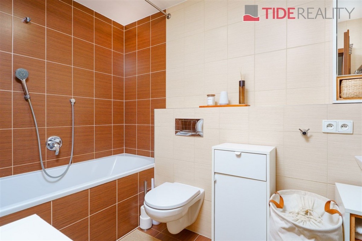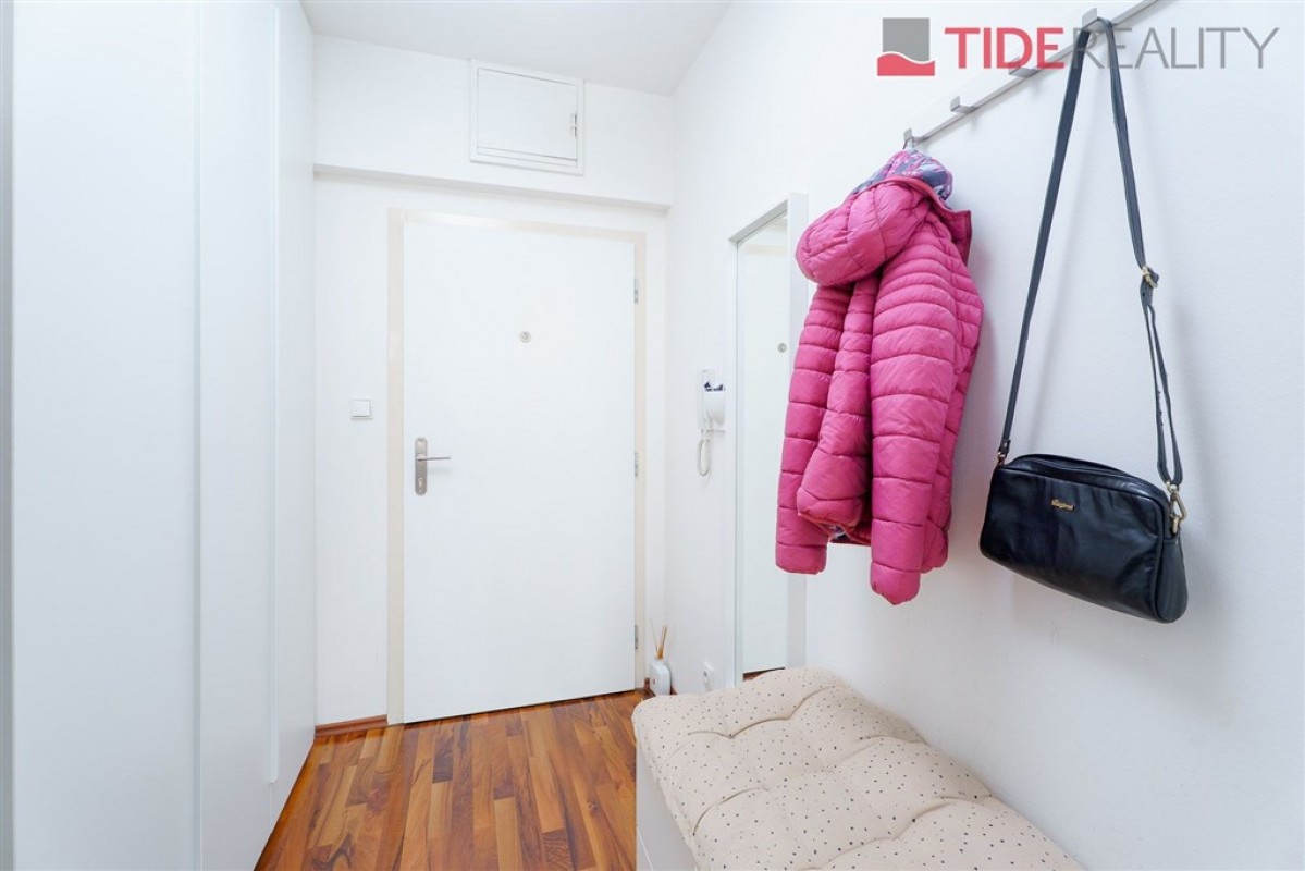 Byt je orientován na jih do ulice, díky čemuž je příjemně prosvětlený po celý den. Vybavení zahrnuje plně zařízenou kuchyňskou linku včetně spotřebičů, vestavěné skříně v předsíni a ložnici, žaluzie i osvětlení, podlahách ve všech pokojích je plovoucí polaha. Koupelna s vanou a místem na připojení pračky je společná s toaletou.