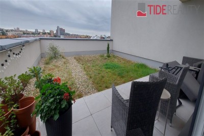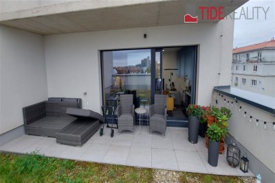 Nabízíme k pronájmu moderní, nezařízený byt 3+kk ( 75 m2) s velkou terasou ( 50 m2) a parkovacím místem v podzemních garážích. Byt se nachází v nedávno dokončené novostavbě na klidném místě ve Strašnicích 10 min chůze od stanice metra Strašnická. Byt sestává z obývacího pokoje spojeného s plně vybavenou a moderní kuchyní s přímým vstupem na úžasnou a prostornou z části zatravněnou privátní terasu, 2 ložnic, které mají výstup na dlouhý balkon cca 10 m2 a obě jsou situované do klidné a tiché zástavby, koupelny se sprchovým koutem, samostatného WC a chodby. Součástí nájmu je rovněž sklepní kóje v suterénu domu. V bytě jsou vestavěné šatní skříně a vertikální žaluzie ve všech oknech. Byt se nachází v 7.patře s výtahem a je orientovaný na jihozápad. Volný od 1.1.2026. Byt je zkolaudován jako ateliér tak je vhodný i na kanceláře, či pro společnosti které jsou plátci DPH. PENB B