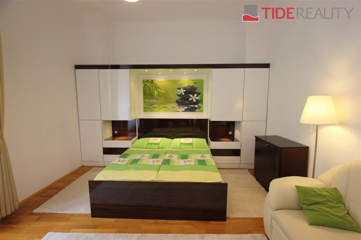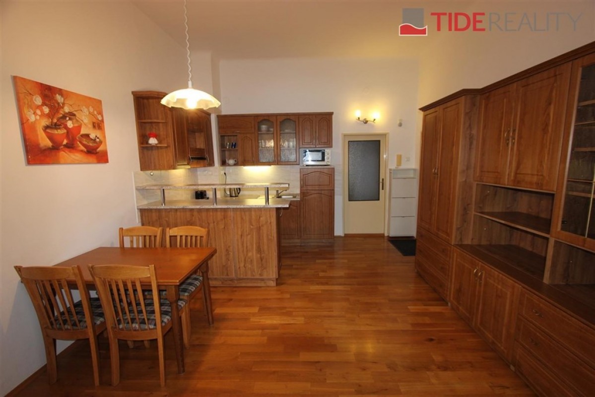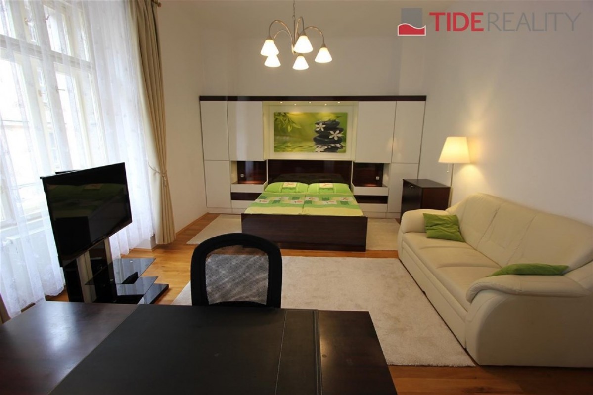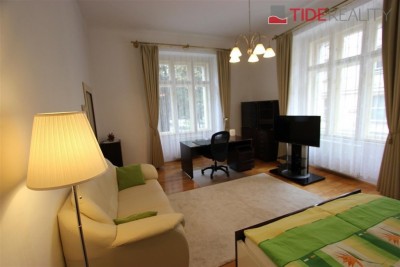 Plně zařízený byt 1+1 o rozloze 60 m2 ve zvýšeném přízemí v nádherně zrekonstruovaném domě na Palackého náměstí jen pár metrů od nábřeží a jen několik kroků od stanice metra B – Karlovo náměstí ( výstup Palackého náměstí) a mnoha tramvajových linek. Byt sestává ze vstupní chodby, plně vybavené kuchyně, prostorného obývacího pokoje s ložnicí, koupelny s vanou a samostatným WC. V bytě jsou parkety a dlažba. Byt se nachází ve zvýšeném přízemí dostatečně vysoko nad úrovní chodníku ( 1.patro) a má samostatný vchod. Orientace bytu je na východní stranu a je orientován do parku a do klidné Podskalské ul. Volný od 4.8. PENB G. Nájemné 24.000 + 4500 zálohy na služby a energie