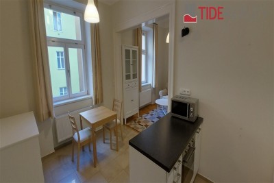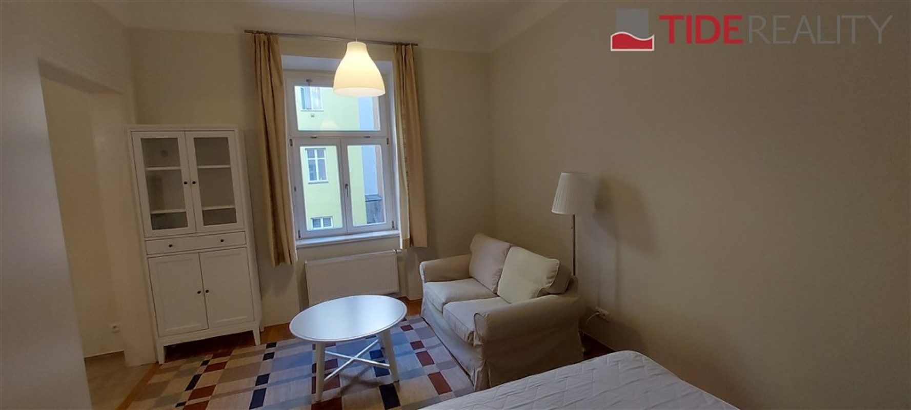 Vkusně zařízený byt 1+1 s prostornou halou je situovaný v 2. patře plně zrekonstruovaného domu nedaleko nábřeží. Příjemný byt má samostatnou, plně zařízenou kuchyni, obývací pokoj/ložnici, koupelnu se sprchou a toaletou, prostornou předsíň. Vysoká kvalita provedení, dlažba, plovoucí podlaha, výtah. PENB C. Celý byt je situován na východní stranu do klidného a tichého vnitrobloku. V okolí domu jsou kavárny, restaurace, obchody. Dům se nachází v pěší vzdálenosti od nábřeží, či od stanice metra Karlovo náměstí. Volný od 15. 2. 2026. Nájemné 22.000, kč + zálohy na služby 6000, Kč