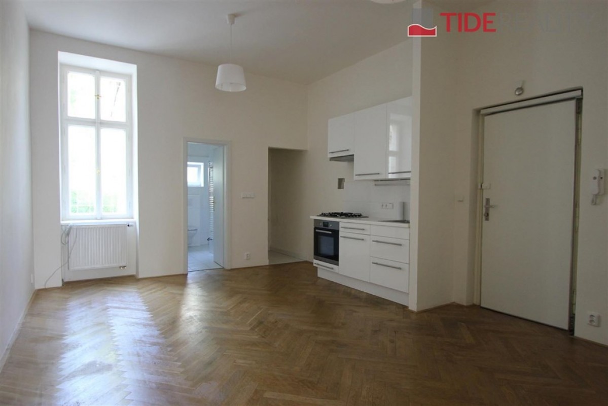 Nově rekonstruovaný byt v tiché ulici na Vinohradech o celkové rozloze 50 m2. Byt se nachází ve zvýšeném přízemí domu, který je rovněž po rekonstrukci. Byt je nezařízený a sestává ze dvou velkých místností s vybaveným kuchyňským koutem a obývacím pokojem a velkou samostatnou ložnicí, která je situována do klidné předzahrádky. Veškerá občanská vybavenost je v pěší vzdálenosti, stejně jako MHD ( tramvaje v Korunní, metro Jiřího z Poděbrad). Byt je volný ihned. Nájem 20.000 + 1.000 Kč/ osobu poplatky. Elektřina a plyn se převádí na nájemníka. PENB G.
