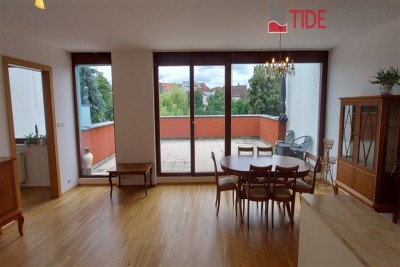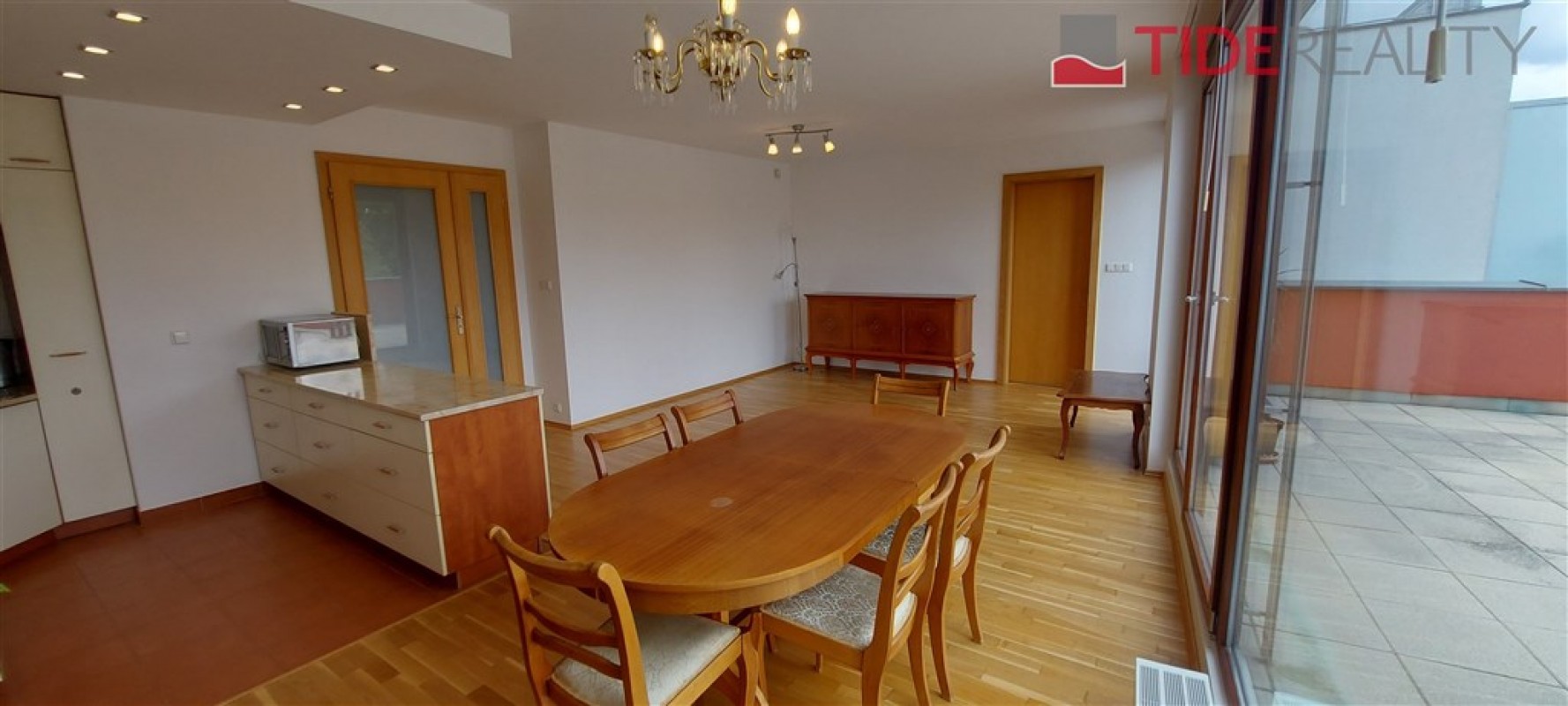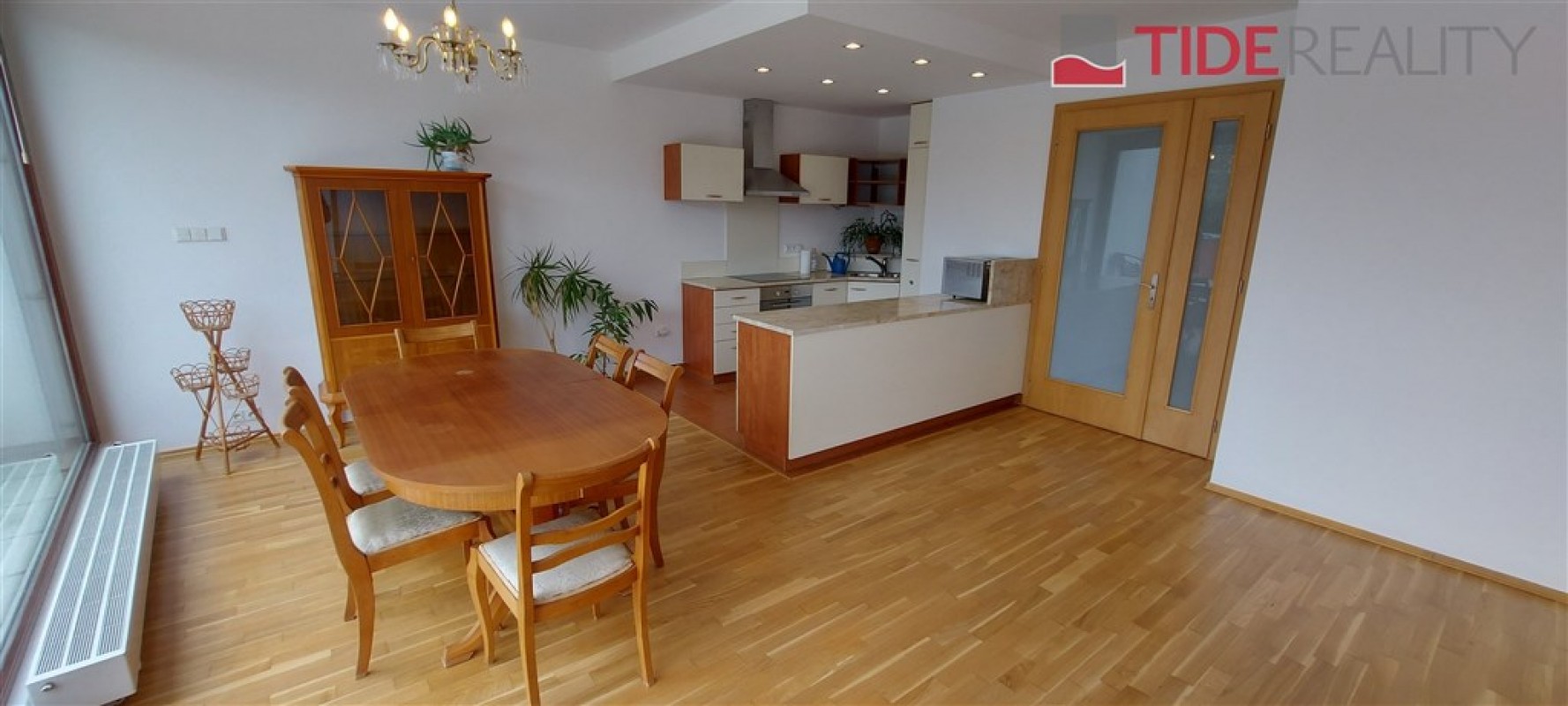 Nabízíme k pronájmu moderní a prostorný byt 3+kk v novostavbě ve vilové čtvrti v Braníku. Byt je částečně zařízený a sestává ze 2 ložnic, pracovny, obývacího pokoje s velkou terasou, koupelny s vanou i sprchovým koutem, samostatným WC, halou a balkonem. Součástí pronájmu je prostorný sklep a parkovací místo v suterénu domu. Byt se nachází ve 2.patře s výtahem a je velmi světlý s krásným výhledem do okolní zeleně. Dům se nachází ve vilové čtvrti, pár metrů od parku Dobeška. Nedaleko je autobusová zastávka s přímým a rychlým spojením na stanici metra Budějovická. Nájemné 35.000, Kč + 8.000 zálohy na služby a energie. Volné od 1.9.