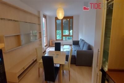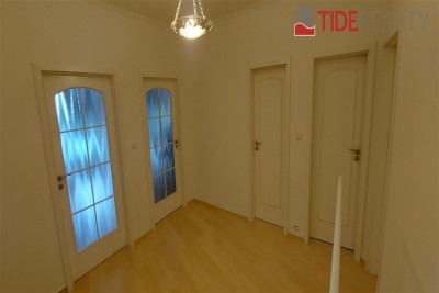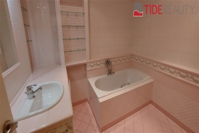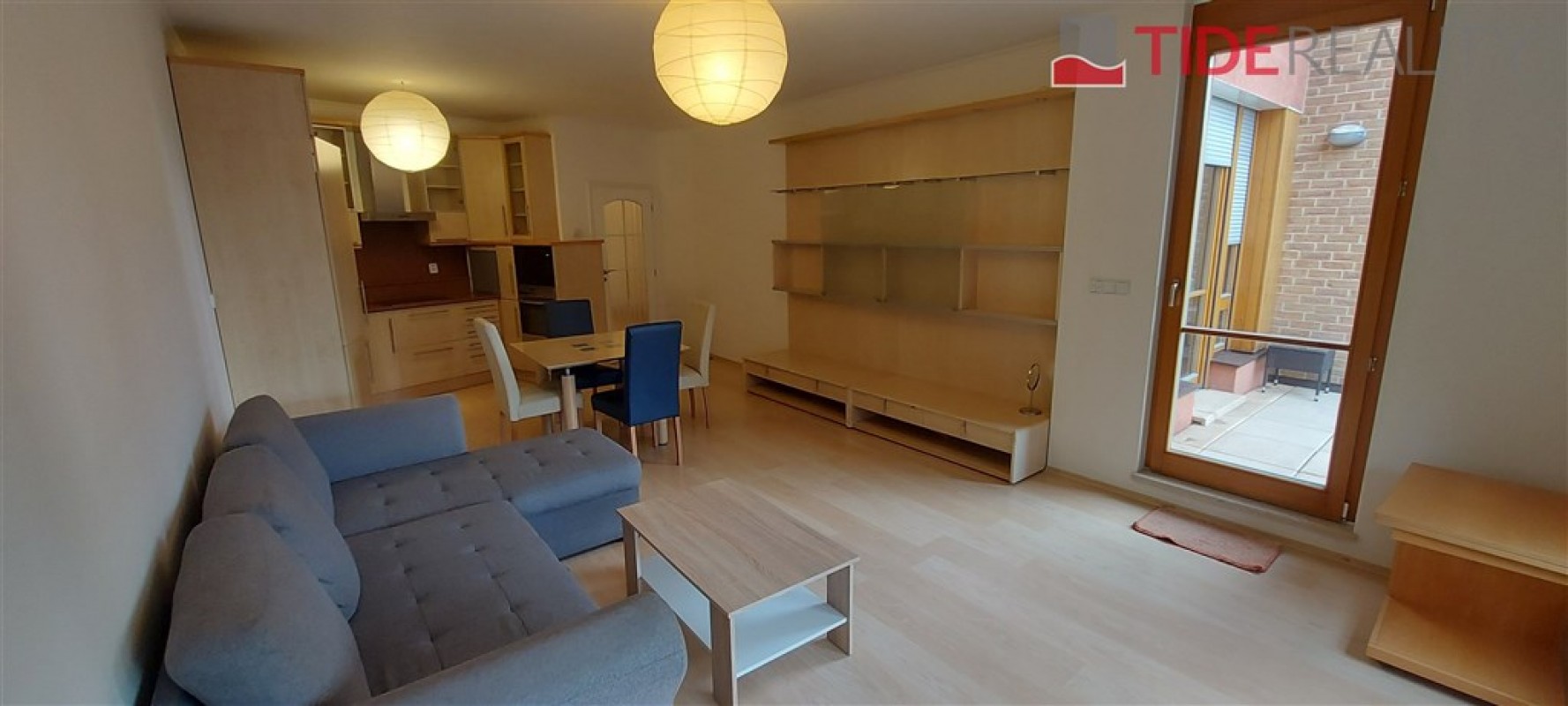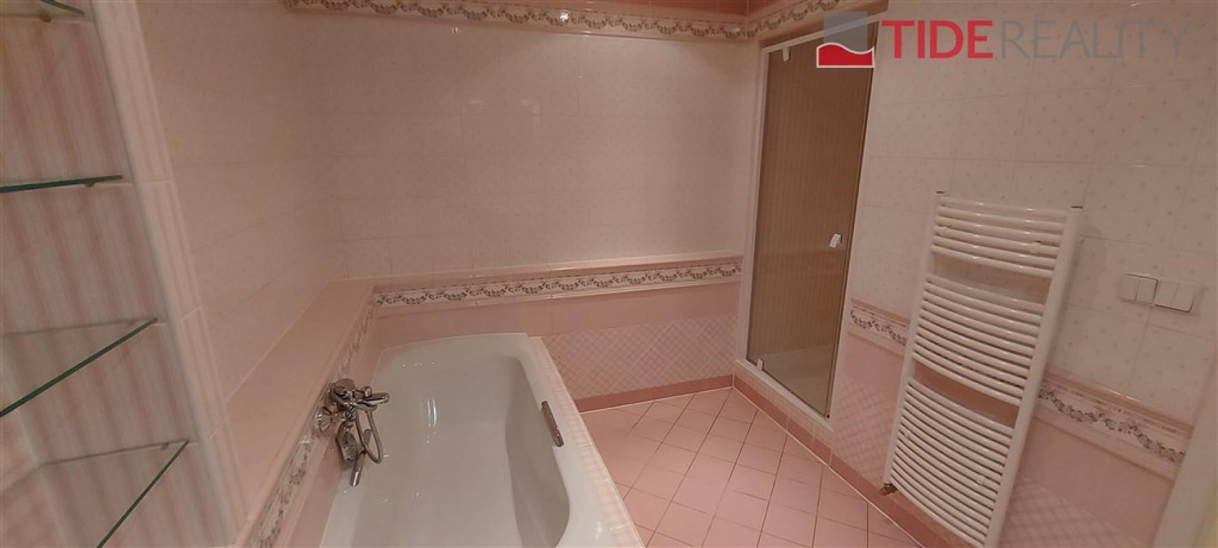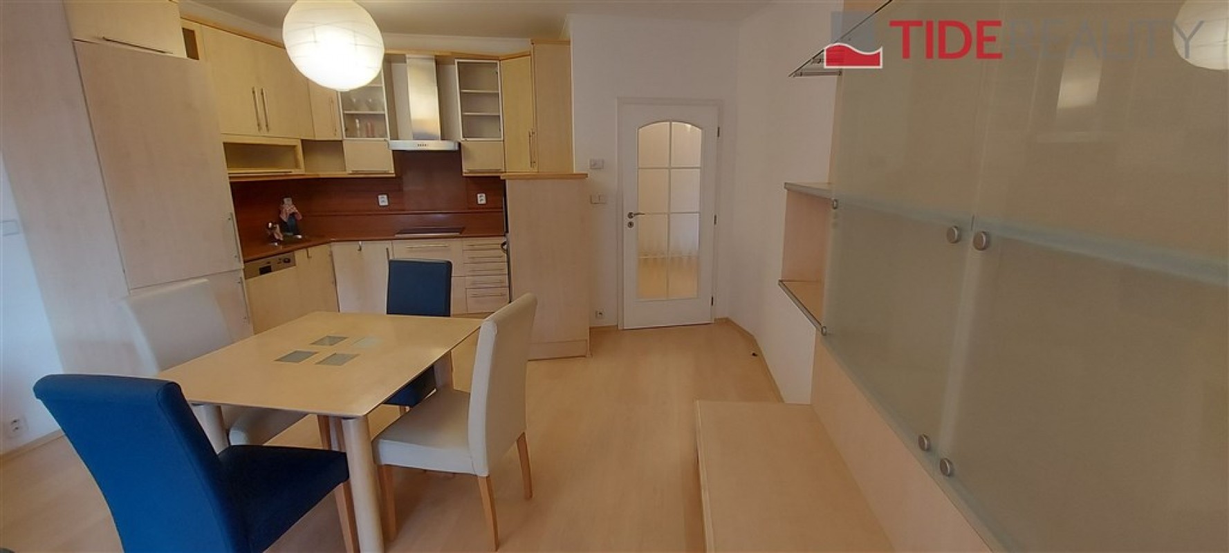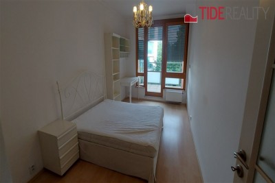 Kompletně zařízený byt situovaný ve 3.patře novostavby v klidné rezidenční čtvrti Strahova. Jeho celková plocha činí 76 m2 a byt sestává z obývacího pokoje s terasou o rozloze 8 m2, kompletně vybavené kuchyně, jedné ložnice, koupelny s vanou i sprchovým koutem, samostatné WC, prostorné šatny a haly. K bytu náleží jedno parkovací místo v podzemních garážích za poplatek 1500, Kč / měsíc. Z terasy je krásný výhled do okolní zeleně a byt je velmi tichý a světlý. V oknech jsou předokenní žaluzie. Dopravní spojení do centra autobusem ( cca 5 min od domu). Volné ihned. Nájemné 25.000 + 6.000 zúčtovatelné zálohy na služby a energie. PENB C.