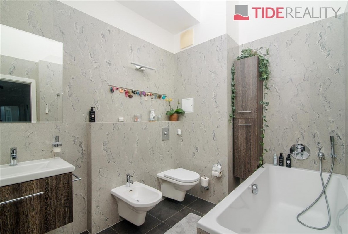 Plně zařízený luxusní byt 4+kk ( 135 m2) v krásném zrekonstruovaném domě v klidné ul. na Břevnově. Byt se nachází v posledním ( 5.patře) s výtahem a sestává ze 3 ložnic, velkého obývacího pokoje s krbem, plně vybavené kuchyně, 2 koupelen s WC, ( s vanou i sprchovým koutem), komory, chodby a 2 balkonů s úžasným výhledem na Prahu a prostorného balkonu do vnitrobloku s vchodem z jedné ložnice. Byt je plně zařízený moderním nábytkem. Prostory jsou velmi velkoryse řešeny s vysokými stropy. Dřevěné podlahy, dlažba, dostatek vestavěných úložných prostor, bezpečnostní vstupní dveře, elektricky ovládané předokenní rolety, centrální vytápění, vyhřívané podlahy v koupelnách, pračka, sušička, myčka, indukční varná deska, mikrovlnná trouba, kávovar, alarm. Součástí nájmu je samostatná garáž v přízemí domu. Jen pár kroků od domu je velký supermarket Billa, autobusová zastávka se spojením k metru Hradčanská. Volné ihned. Nájemné 49.900 + zálohy na služby a energie 15.000. PENB C.