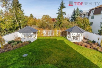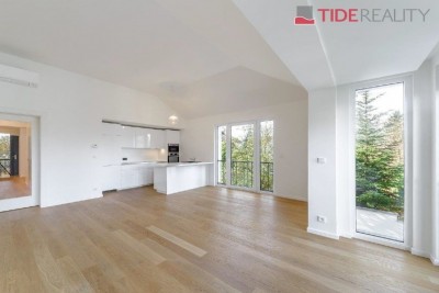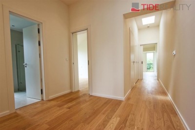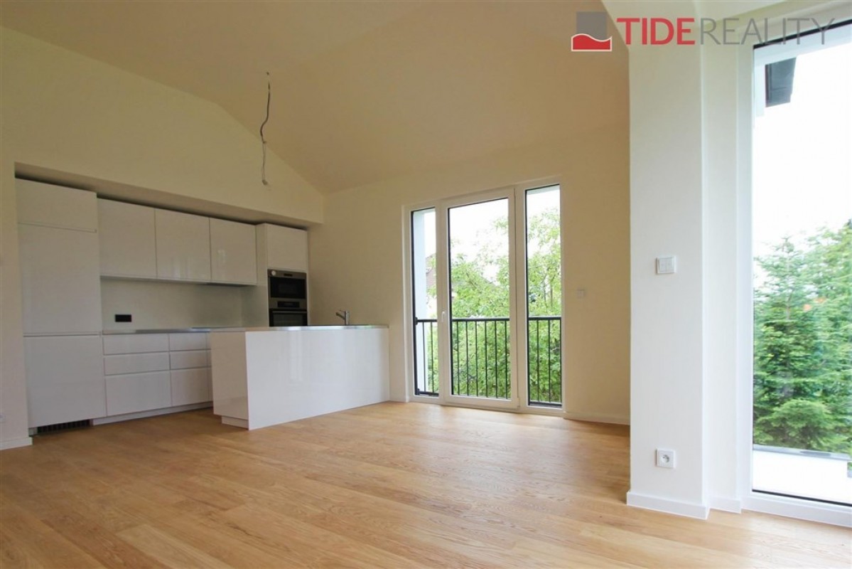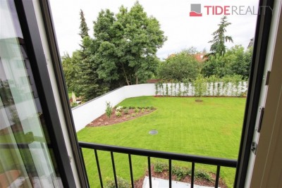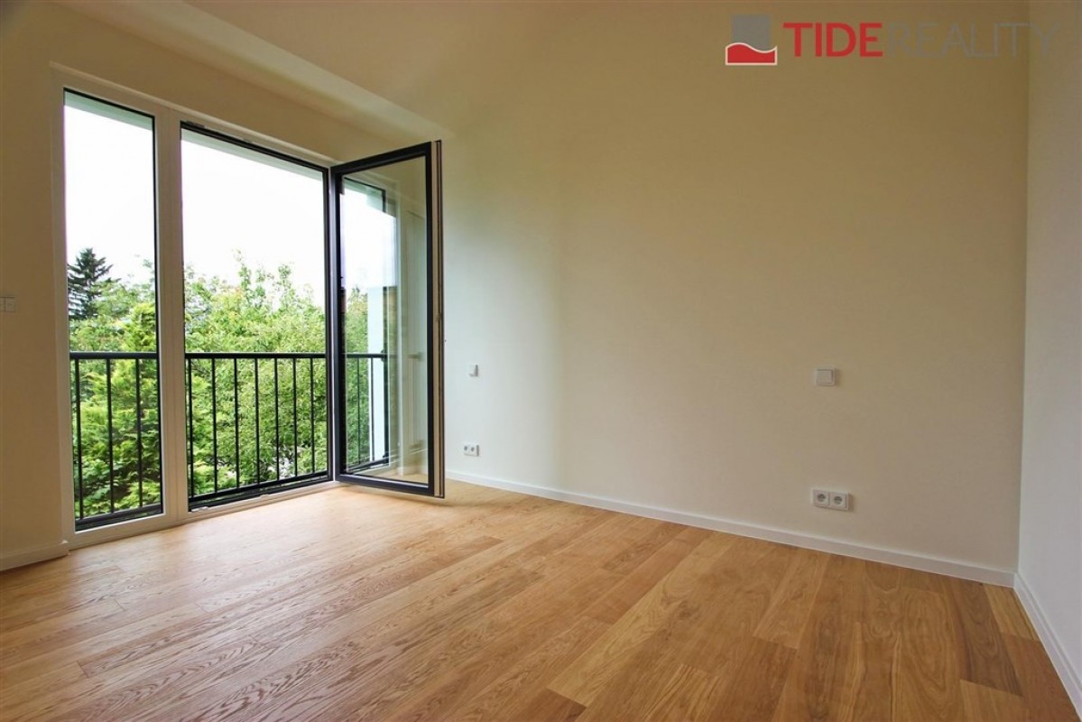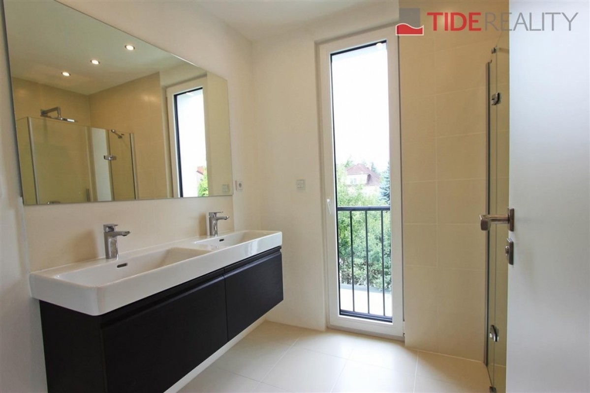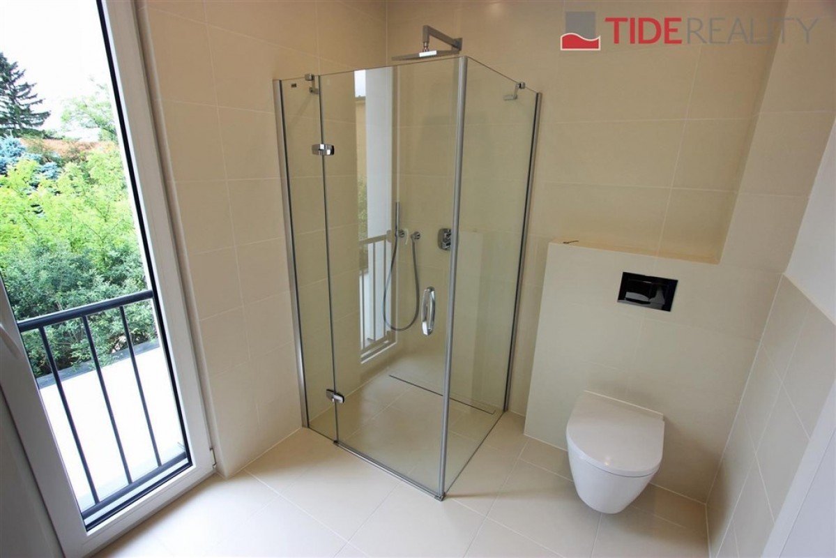 Pronájem velmi kvalitního samostatného klimatizovaného bytu 3+kk v I. patře nové dvoupodlažní vily o ploše 86 m2 se zahradním sezením a parkováním pro dvě auta. Byt má plně vybavený kuchyňský kout, obývací pokoj s výhledem do zahrady, 2 ložnice, prostornou koupelnu a samostatné WC. V bytě jsou dřevěné podlahy a kvalitní mramorová dlažba, úklidová místnost. V celém domě je instalováno podlahové topení a bezpečnostní systém. Součástí bytu jsou bezpečnostní venkovní rolety, velká francouzská okna a alarm s připojením k PCO. K bytu patří venkovní altán v zahradě, zahradní domek sloužící jako skladovací prostor a 2 parkovací stání na pozemku domu.