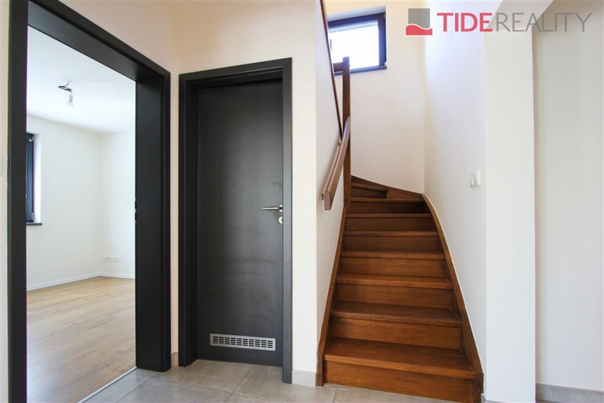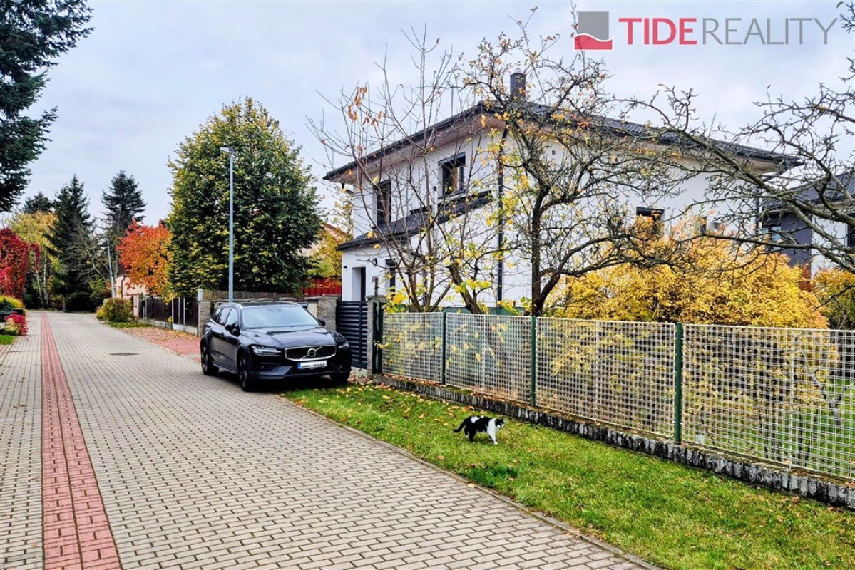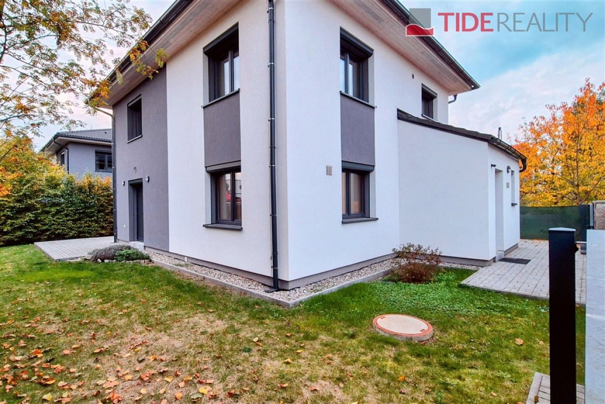 Moderní rodinný dům (5 + kk, 156 m2) se nachází v klidné části Šeberova (Hrnčíře). V přízemí je vstupní hala, velký obývací pokoj s kompletně zařízeným kuchyňským koutem (42 m2) a s přímým vstupem na terasu a do zahrady, samostaný pokoj, koupelna se sprchou a toaletou a komora. První patro tvoří 3 ložnice, velká koupelna s vanou a další koupelna přístupná z rodičovské ložnice a menší šatna. Dům je plně klimatizovaný, připojený na optický kabel, k dispozici jsou 2 parkovací stání na pozemku. Ihned k dispozici. PENB třída B.