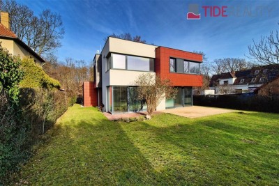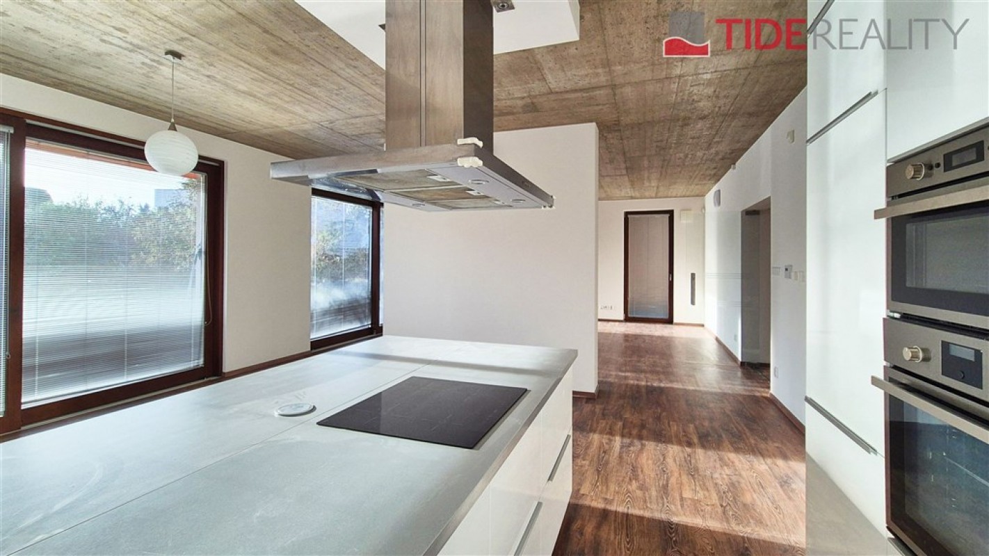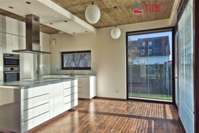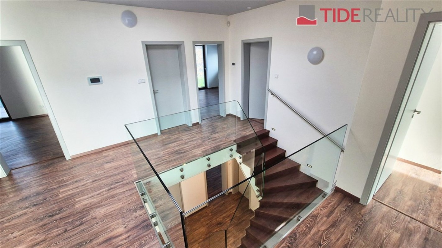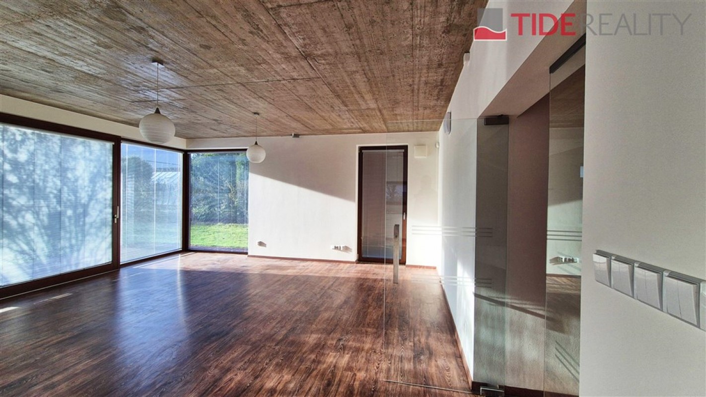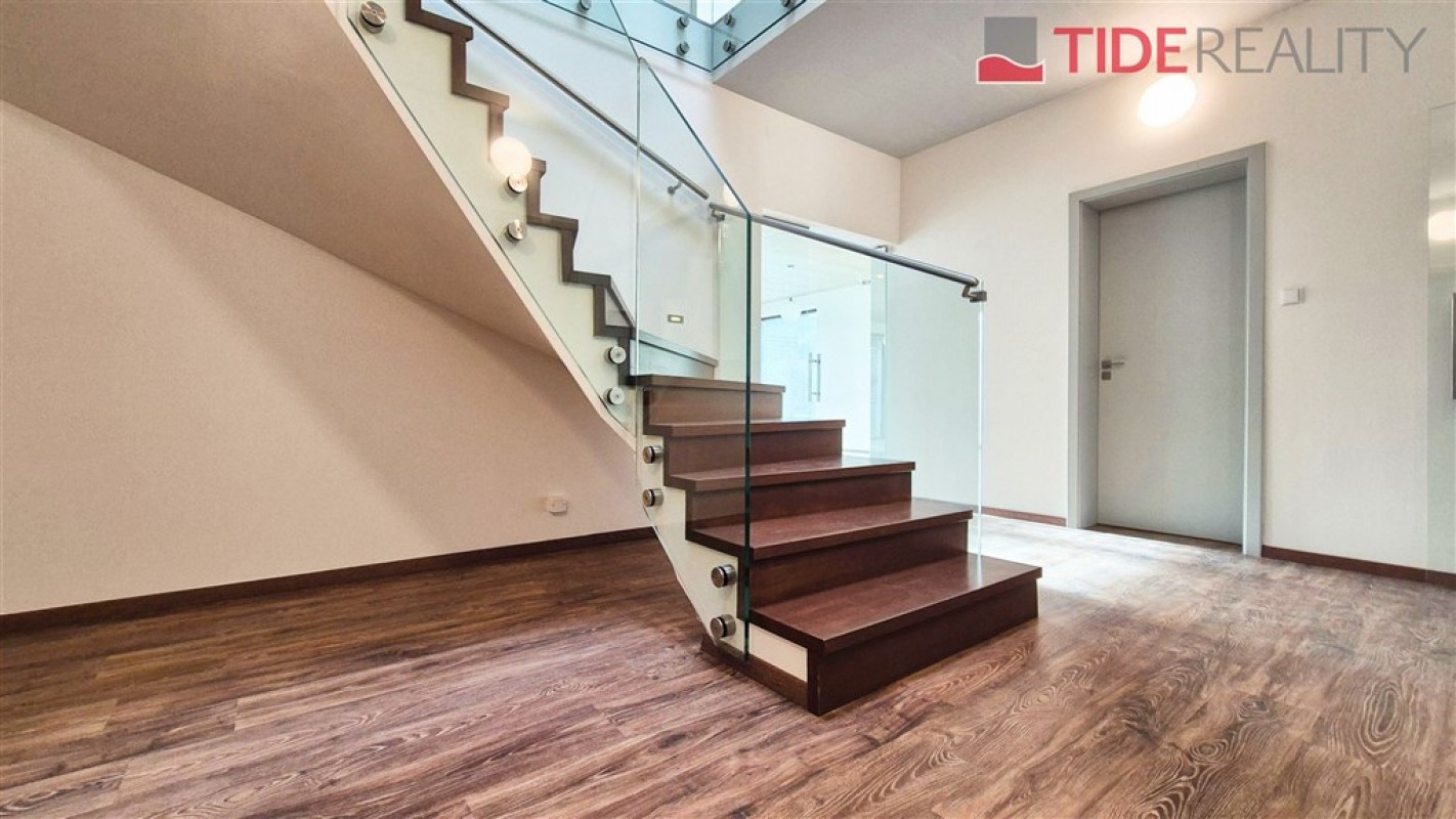 Moderní vila je umístěna v klidné lokalitě Kunratic, přímo u lesoparku Kunratická bažantnice a v docházkové vzdálenosti od rybníka Šeberák. V přízemí se nachází velký obývací pokoj s plně vybavenou kuchyní a jídelnou, ložnice pro hosty s vlastní koupelnou. Obývací pokoj a jídelna mají přímý vstup na terasu a zahradu. V prvním patře je 5 ložnic a 3 koupelny. Hlavní ložnice má ensuite koupelnu a šatnu. Dům má podlahové vytápění s tepelným čerpadlem. Zahrada je vybavena automatickou závlahou. Garáž pro 2 auta. PENB třída C. Volný od prosince 2025.