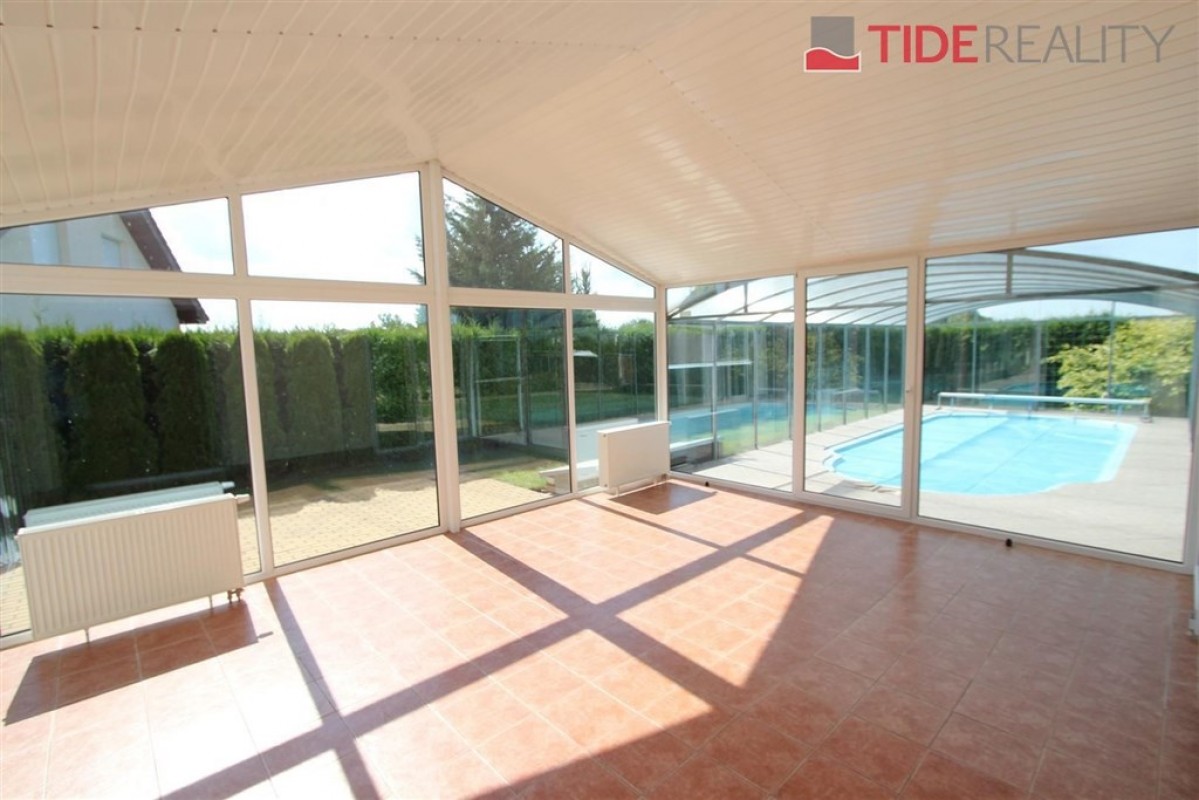 Velice pěkný prostorný a nezařízený dům (6 + 1, 290 m2) s velkou zahradou (711 m2) nabízí 5 ložnic, obývací pokoj s krbem, velkou zimní zahradu a terasu, krytý bazén, plně vybavenou kuchyň, 3 koupelny. Podlahové topení, vestavěné skříně, nízké náklady na vytápění (tepelné čerpadlo), garáž pro 2 auta. PENB třída C. Vhodné pro rodiny s dětmi, uprostřed krásné přírody s dobrou dostupností do centrální Prahy. Nájemné 69.900, Kč / měsíc. Zálohy na služby a energie 12.000, Kč/ měsíc jednou ročně zúčtovatelné dle skutečné spotřeby Nájemce. Volné ihned.