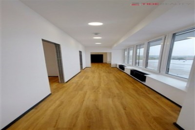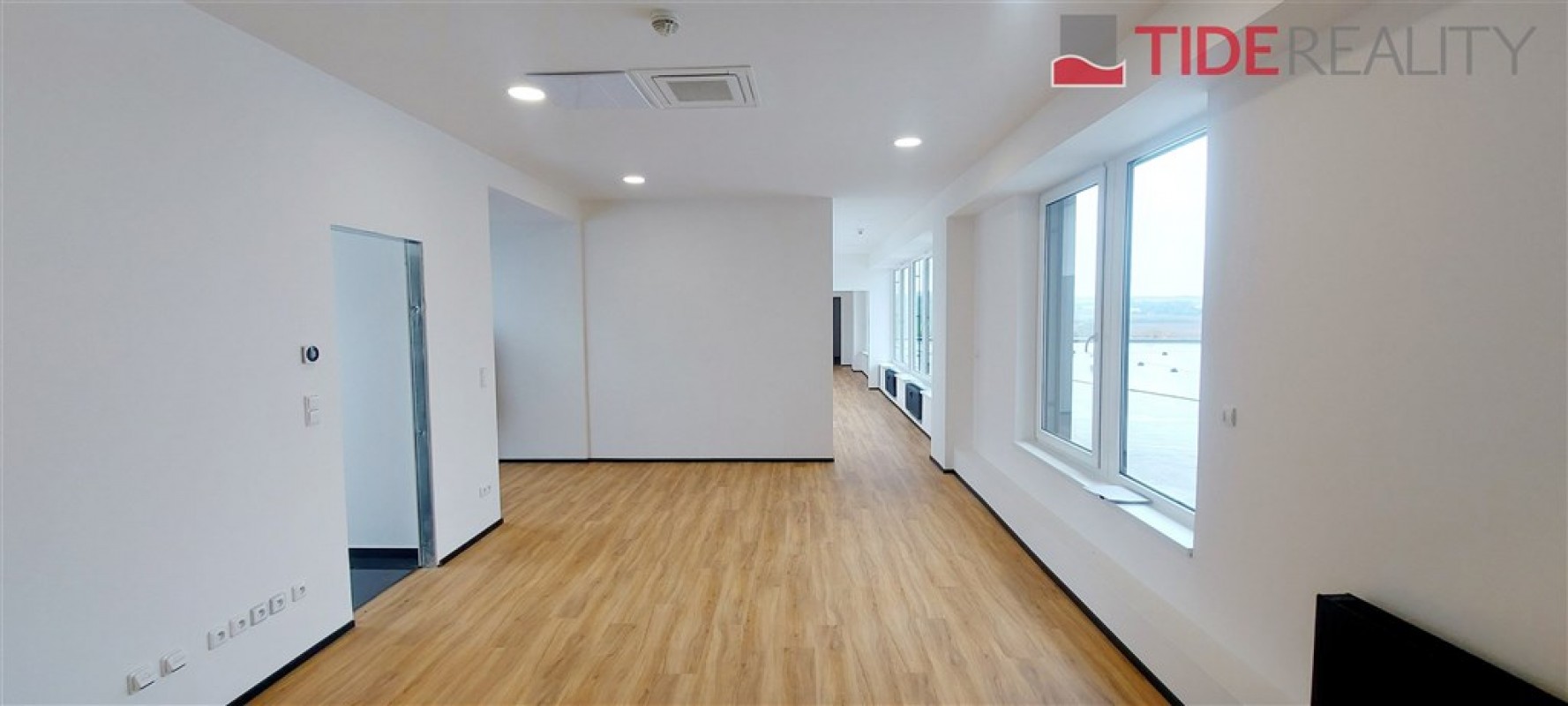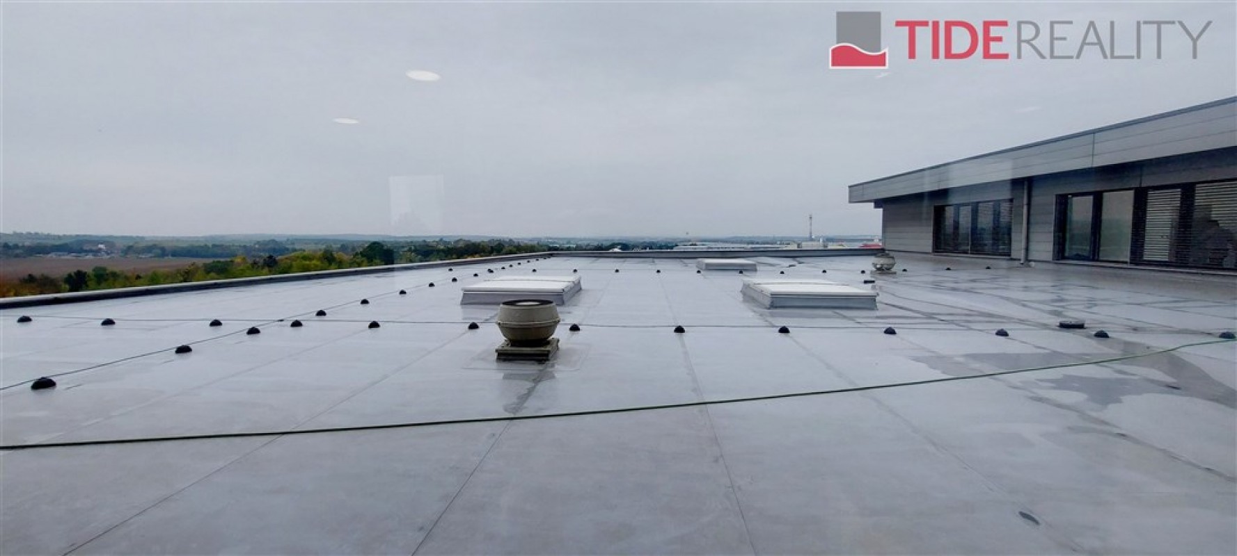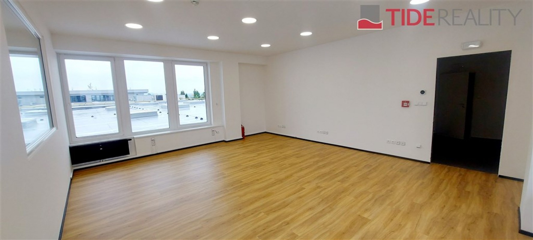 Nabízíme k pronájmu velmi světlé a prostorné kancelářské prostory v areálu v Modleticích. Kanceláře jsou po kompletní rekonstrukci a nachází se ve 3.patře s výtahem. Celková vnitřní plocha kanceláří je 147 m2 a je členěna na vstupní kancelář s malou, plně vybavenou kuchyňkou, 2 x WC, další 2 kanceláře a reprezentativní zasedací místnost ( kancelář) a malý oddělený archív. Všude jsou nové vinylové podlahy, klimatizace, venkovní elektricky ovládané žaluzie. Výhled přes střechu budovy do okolní krajiny. Součástí nájmu jsou 2 parkovací místa uvnitř areálu v ceně. Nájemné činní 43.400, Kč / měsíc + zálohy na služby 9.000, Kč / měsíc. V případě potřeby je možné si v přízemí pronajmout velmi prostorný sklad s příslušenstvím a malou kuchyňkou ( cca 100 m2), které však lze využít jako další kancelář s vlastním zázemím. Nájemné za tento skladový prostor činní 20.500, Kč / měsíc + záloha na služby 6.000, Kč. Oba prostory jsou volné ihned